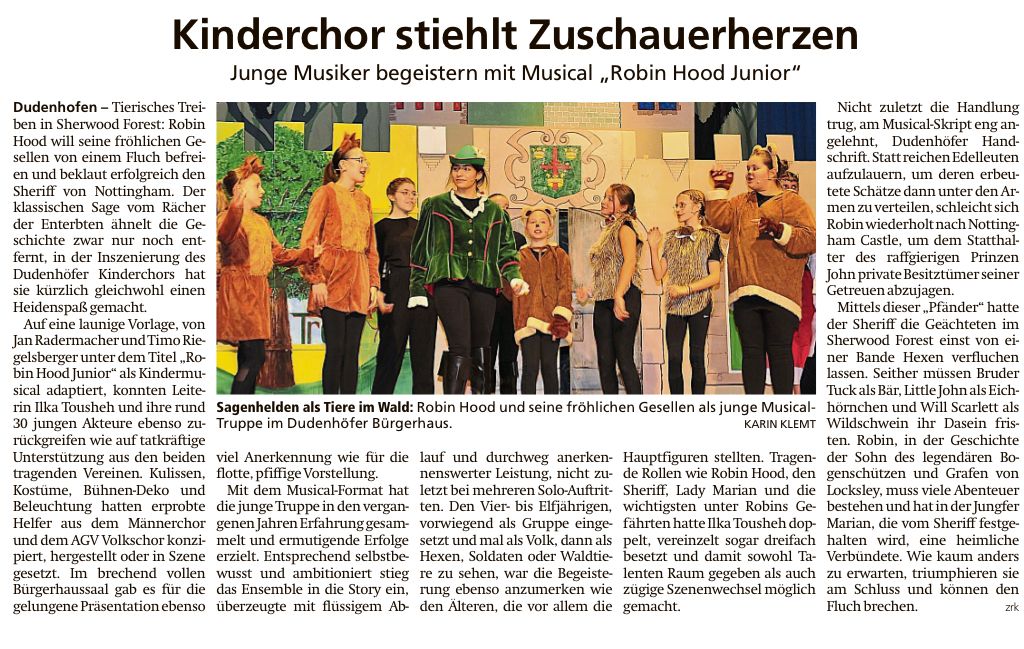 | 26.10.2025 | Kindermusical "Robin Hood" mit dem Dudenhöfer Kinderchor - Artikel Offenbach Post vom 29.10.2025 |